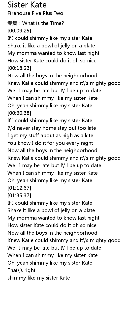 | [00:50.46] | If I could shimmy like my sister Kate |