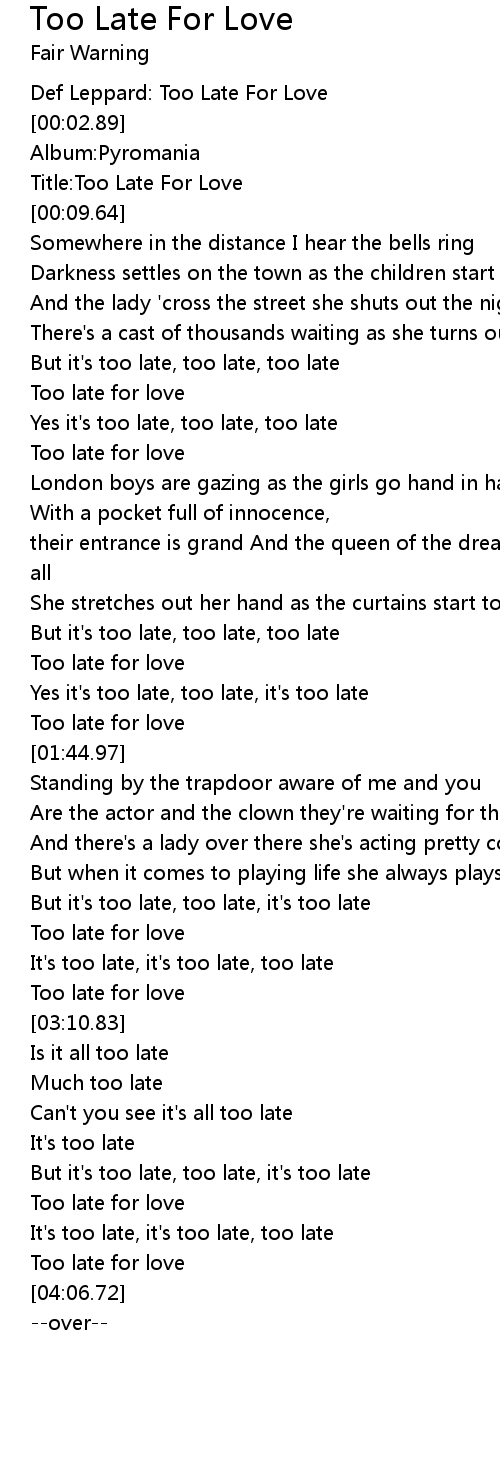 Yes it's too late, too late, it's too late |