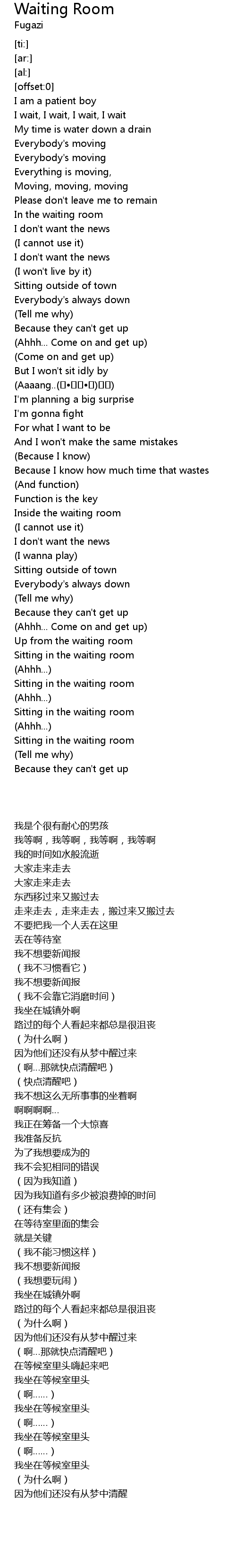 | [02:40.82] | Sitting in the waiting room |