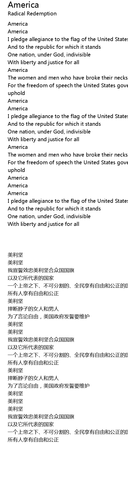 I pledge allegiance to the flag of the United States of America |