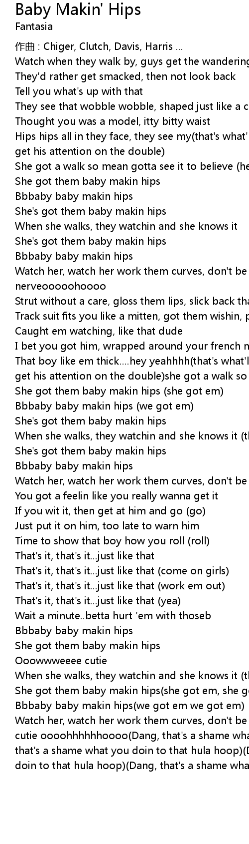 | Watch her, watch her work them curves, don't be mad cause that's a nerveoooweee cutie oooohhhhhhoooo(Dang, that's a shame what you doin to that hula hoop)(Dang, that's a shame what you doin to that hula hoop)(Dang, that's a shame what you doin to that hula hoop)(Dang, that's a shame what you doin to that hula hoop) |