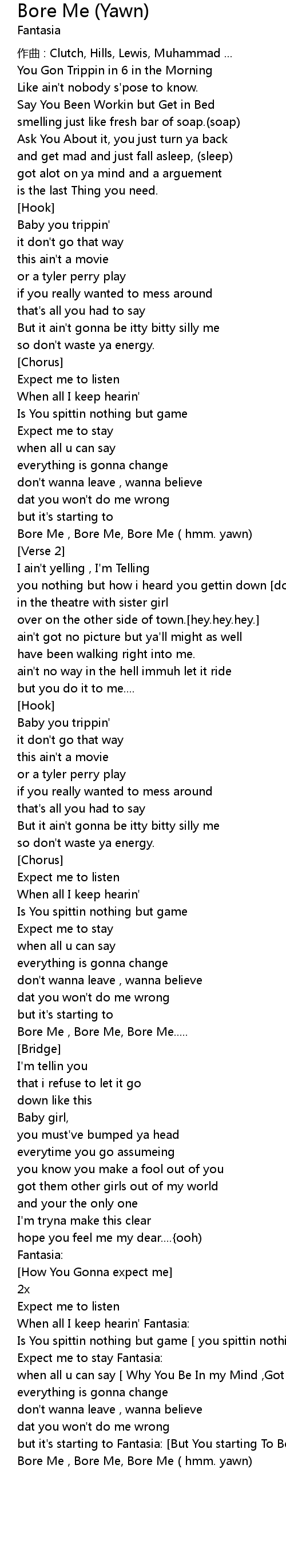 | Bore Me , Bore Me, Bore Me ( hmm. yawn) |