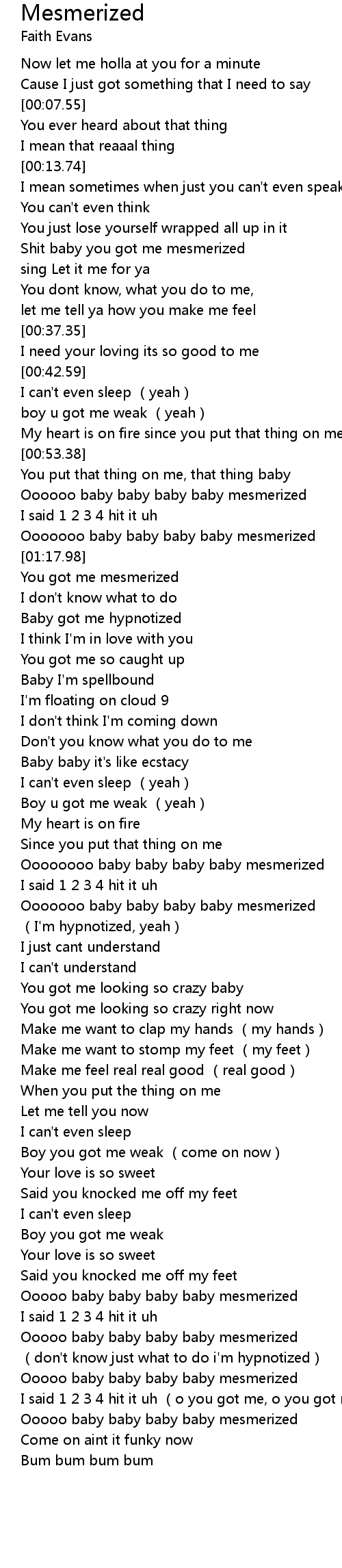 | [01:10.35] | Ooooooo baby baby baby baby mesmerized |