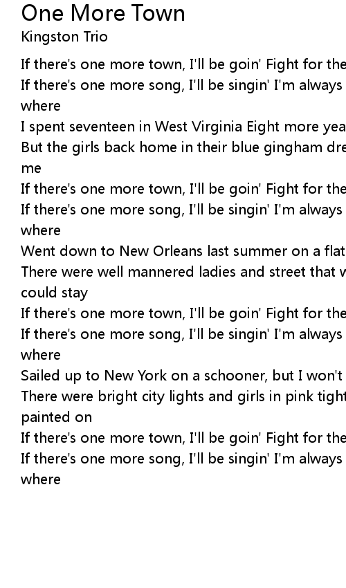 If there's one more town, I'll be goin' Fight for the winnin' and I'll be there |