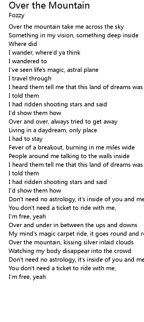 | Over the mountain take me across the sky | |