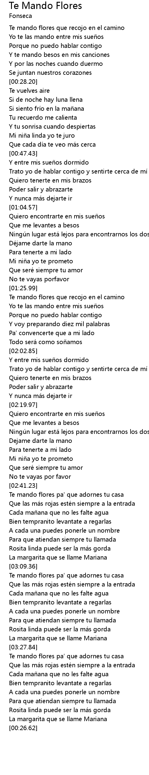 | [03:28.02] | Te mando flores pa' que adornes tu casa |