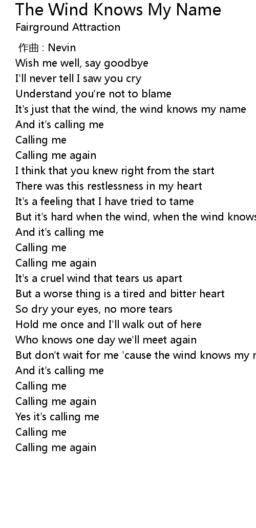 | [01:54.65] | But don' t wait for me ' cause the wind knows my name |