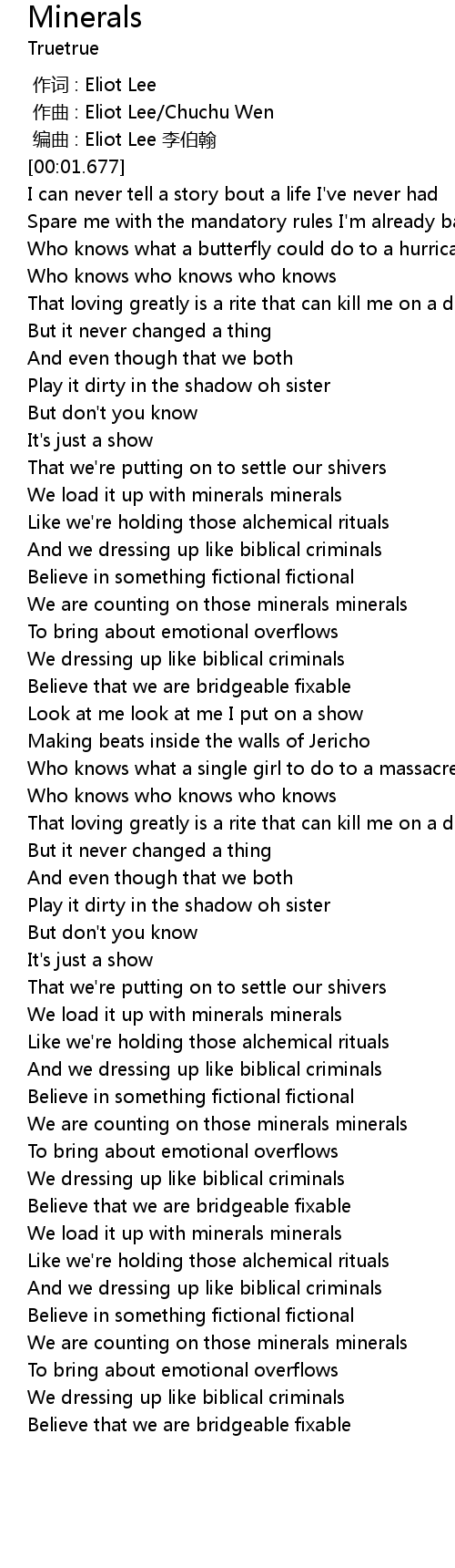 | [00:01.118] | biān qǔ : Eliot Lee lǐ bó hàn |