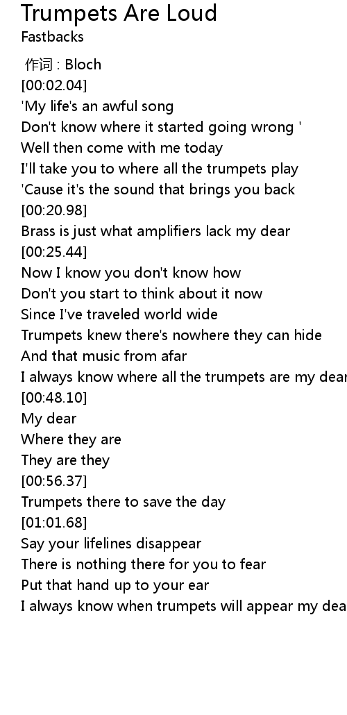 | [00:56.96] | Trumpets there to save the day |
