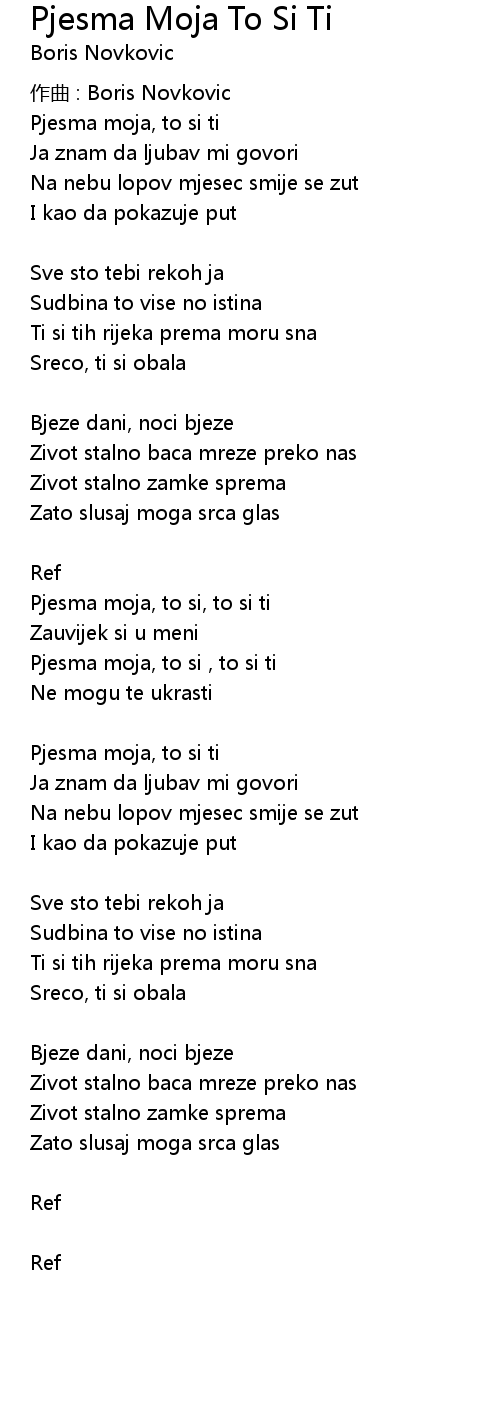 | Pjesma moja, to si ti | |