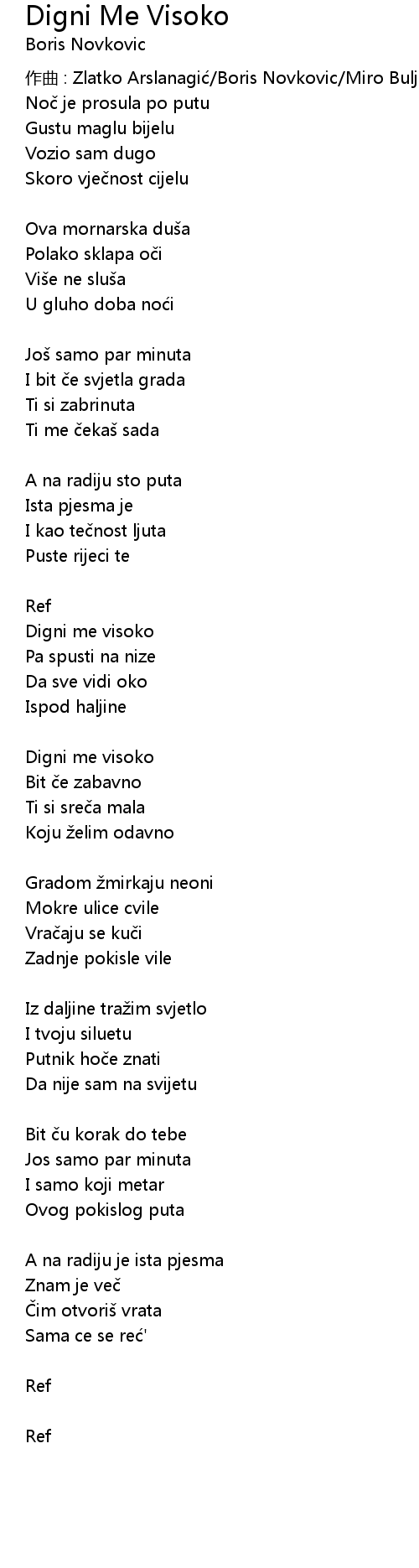 | 作曲 : Zlatko Arslanagić/Boris Novkovic/Miro Buljan | |