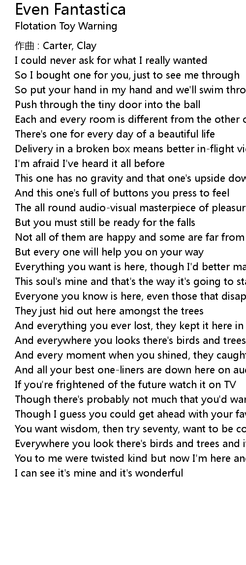 | And everywhere you looks there's birds and trees and hope | |