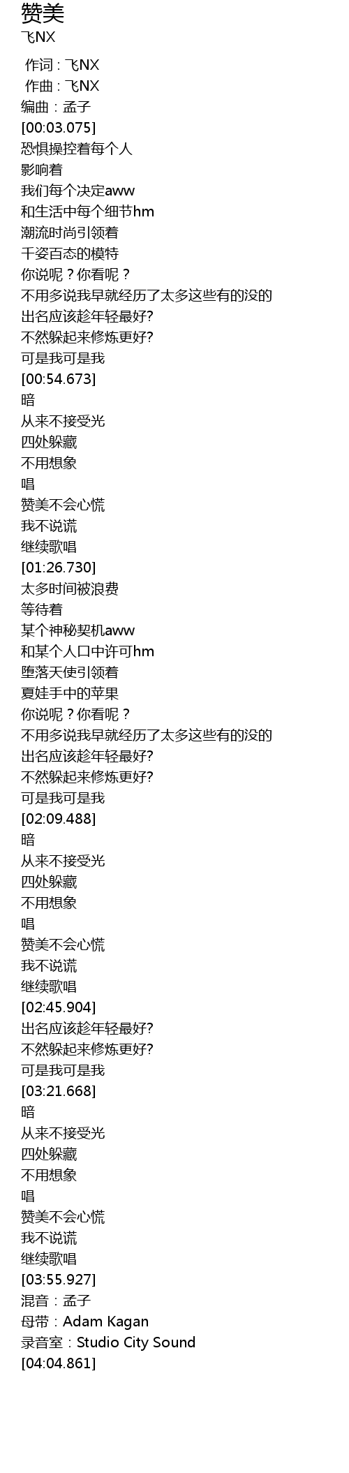 | [00:00.000] | 作词 : 飞NX |