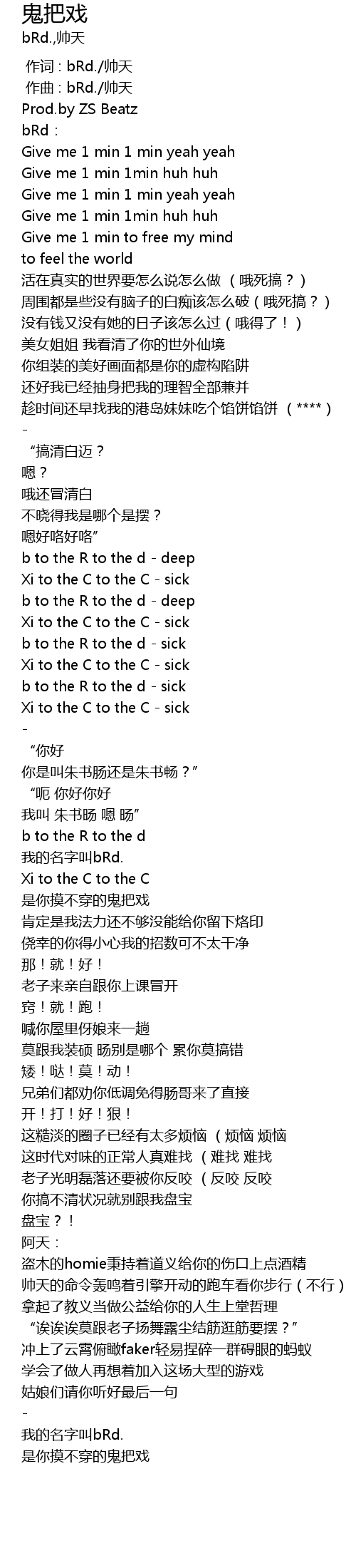 | [00:00.000] | 作词 : bRd./帅天 |