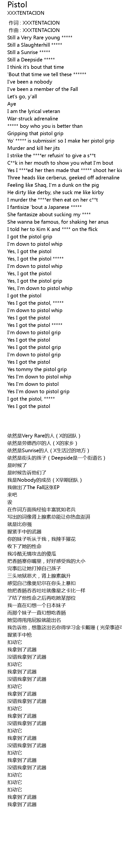| [00:42.22] | Yes I ****ed her then made that ***** shoot her kids |
