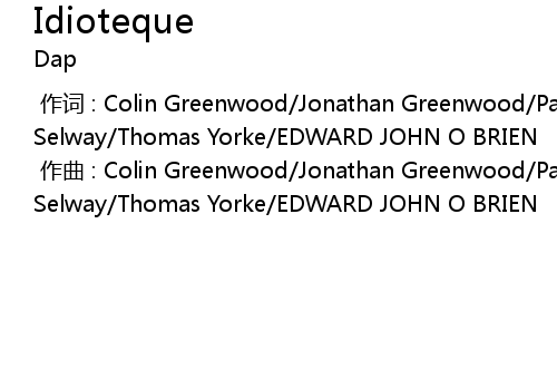 | [00:00.000] | zuò cí : Colin Greenwood Jonathan Greenwood Paul Lansky Philip Selway Thomas Yorke EDWARD JOHN O BRIEN |