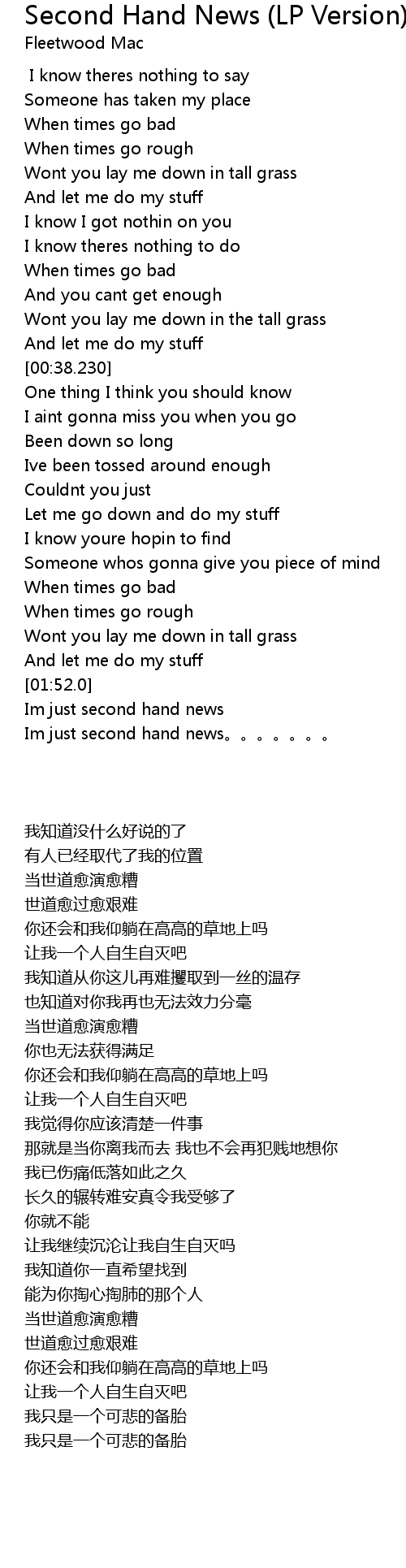 | [02:03.290] | Im just second hand news。。。。。。。 |