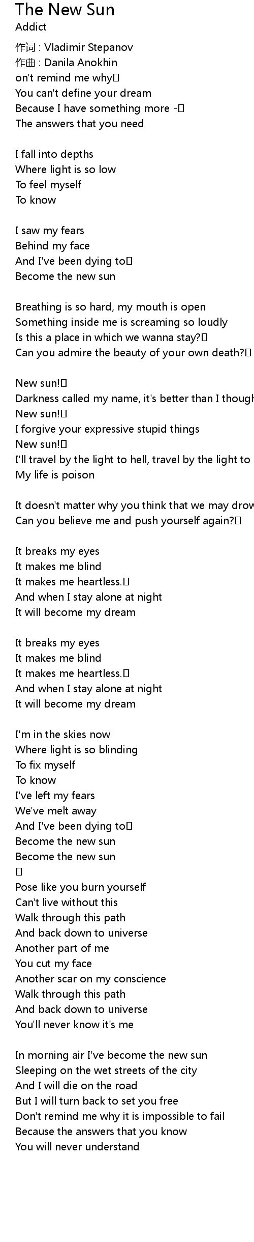 | In morning air I've become the new sun | |