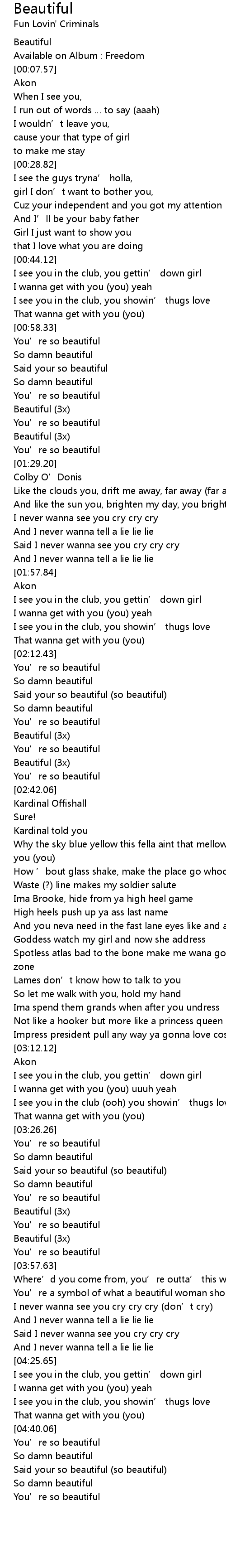 | [03:08.45] | Impress president pull any way ya gonna love cos you' re beautiful ?? |