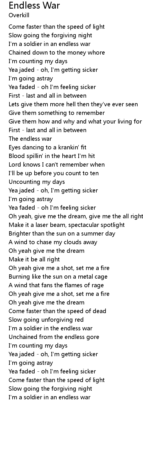 | I'm a soldier in the endless war | |