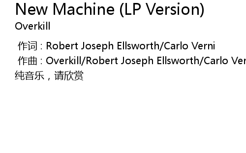 | [00:01.000] | 作曲 : Overkill/Robert Joseph Ellsworth/Carlo Verni |