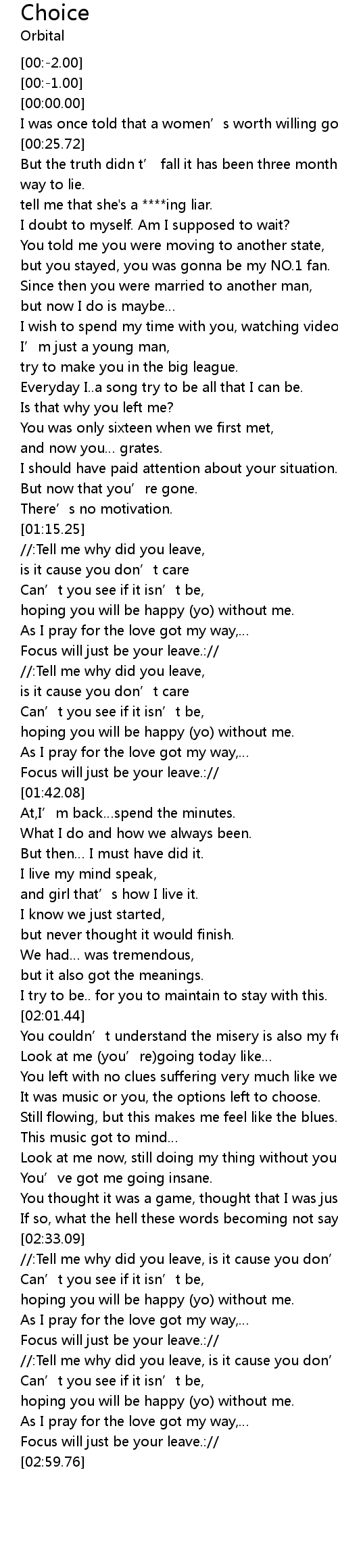 | [02:38.41] | hoping you will be happy (yo) without me. |