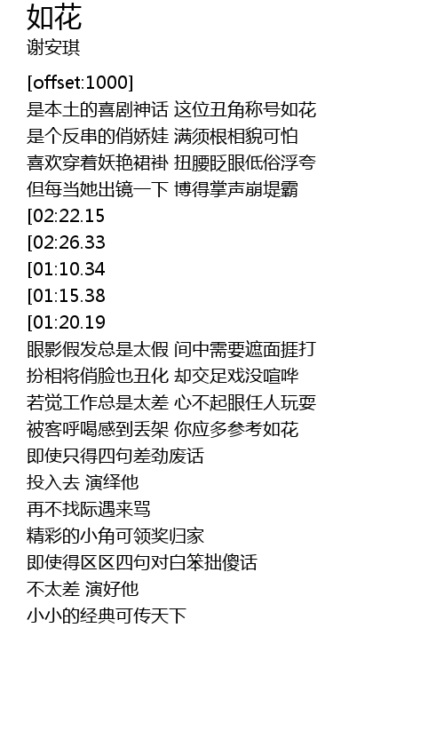 | [02:12.01] | 被客呼喝感到丢架 你应多参考如花 |