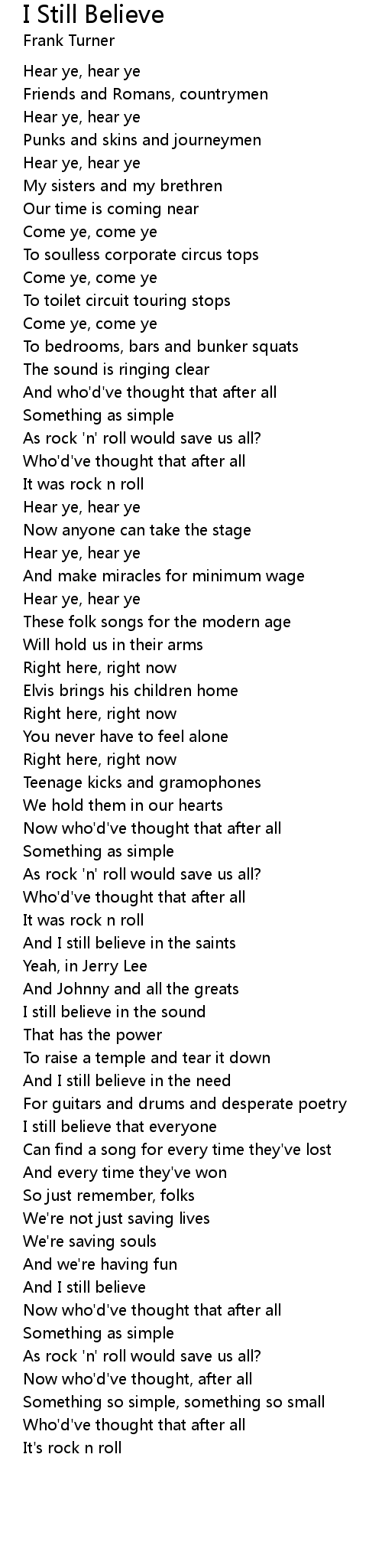 And I still believe |