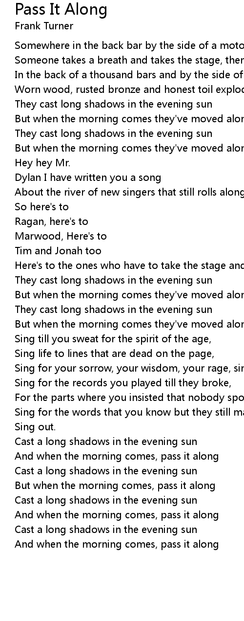 Sing for your sorrow, your wisdom, your rage, sing out. |