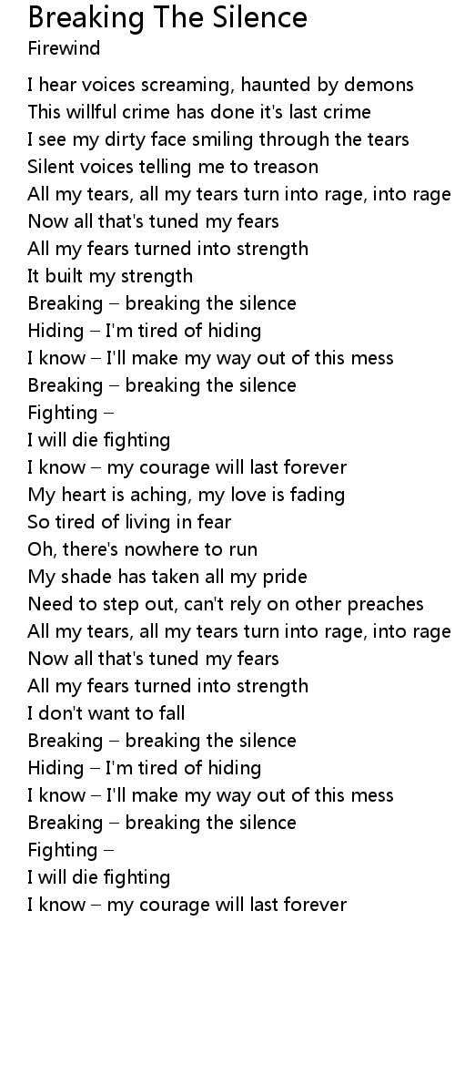 | Breaking breaking the silence | |