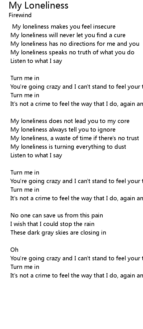 My loneliness will never let you find a cure |