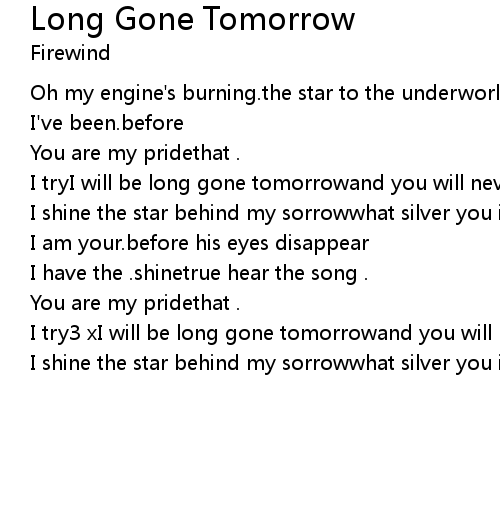 | Song | Long Gone Tomorrow |
