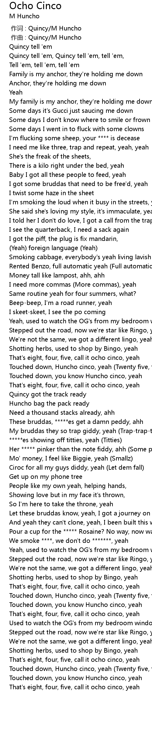 | [00:00.000] | zuò cí : Quincy M Huncho |