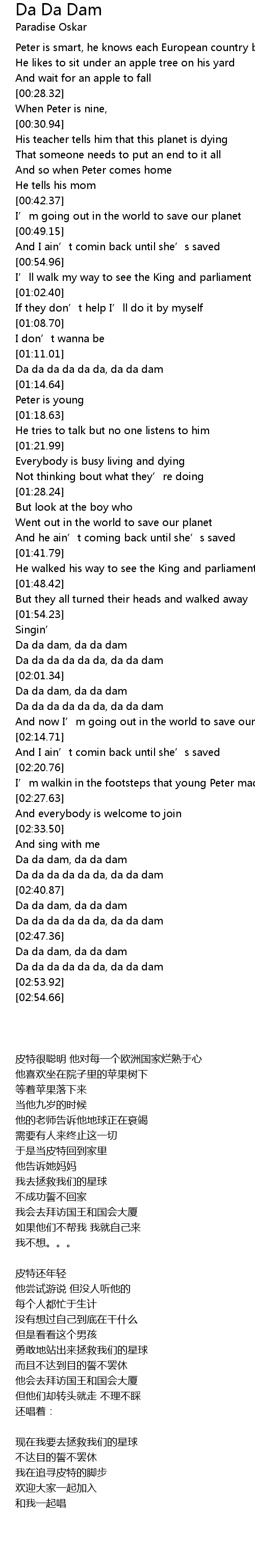 | [00:16.98] | Peter is smart, he knows each European country by heart |