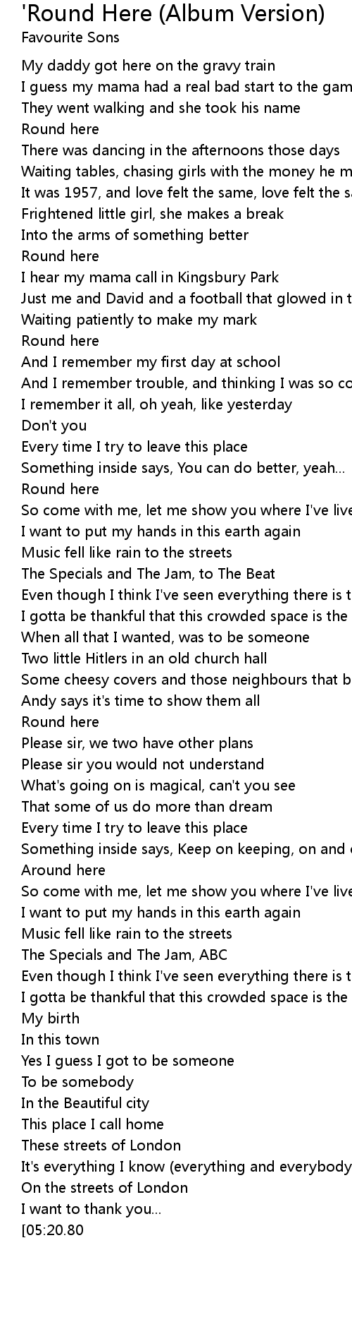 'Round Here (Album Version) Lyrics