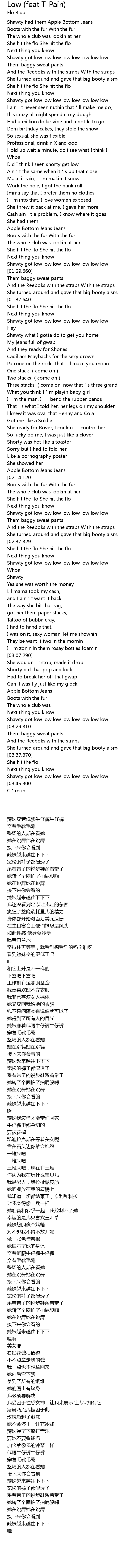 | [03:24.890] | Shawty got low low low low low low low low |