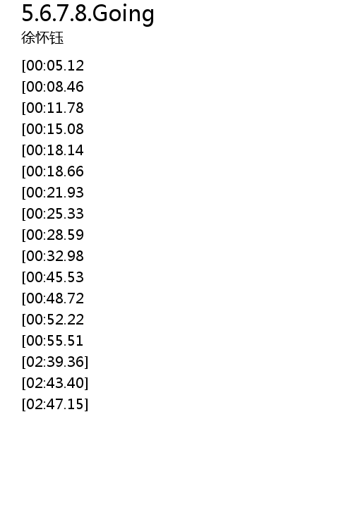 | [02:30.05][00:55.51] | 将我抱紧 Where are we gong?5.6.7.8 |