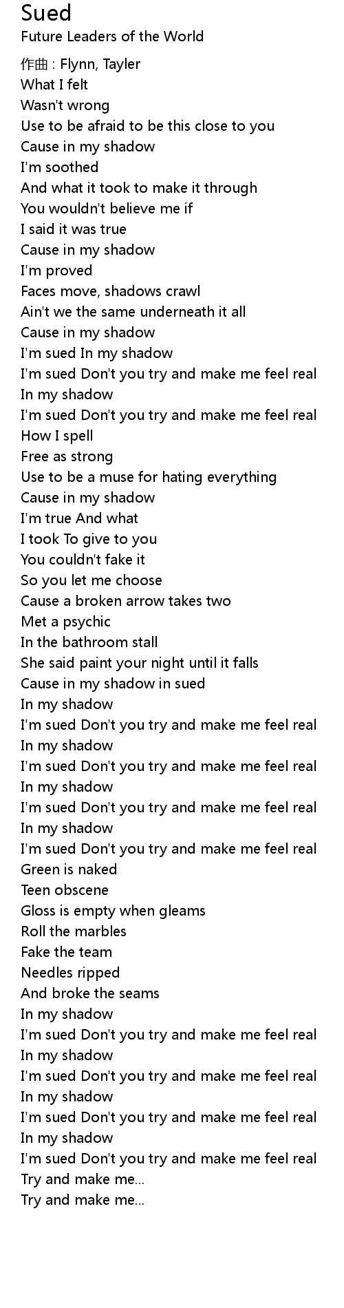 | I' m sued Don' t you try and make me feel real | |