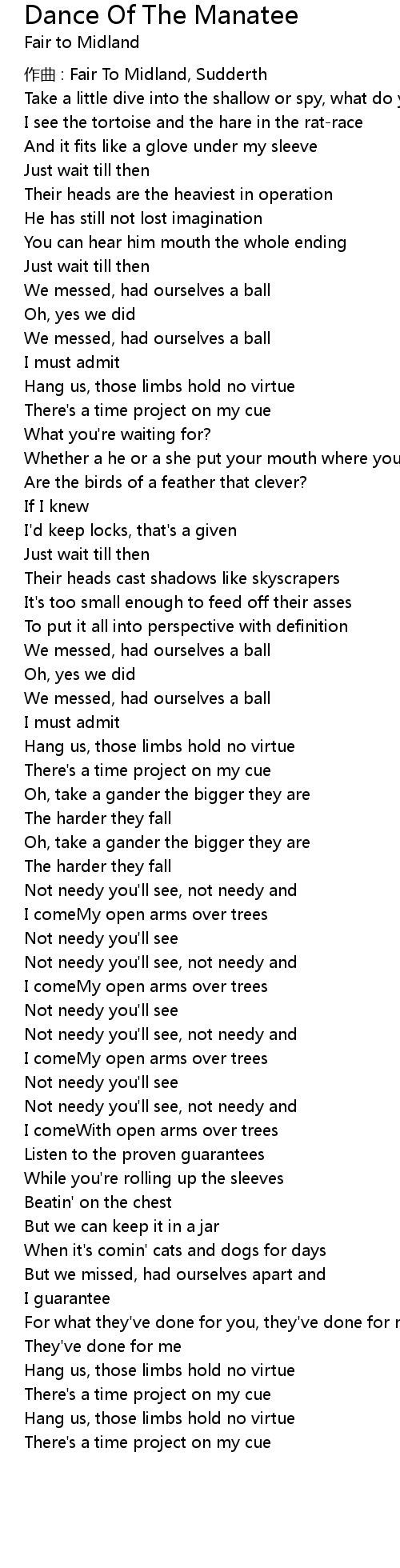 | Song | Dance Of The Manatee |
