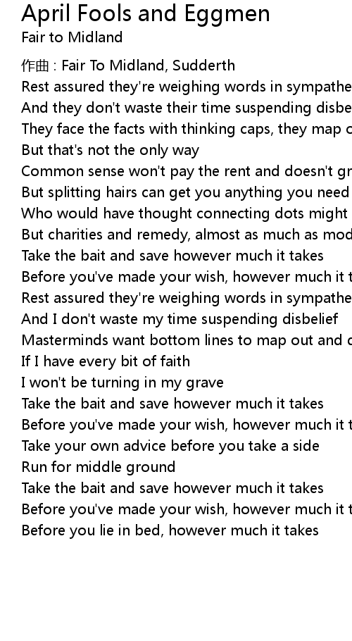| Song | April Fools and Eggmen |