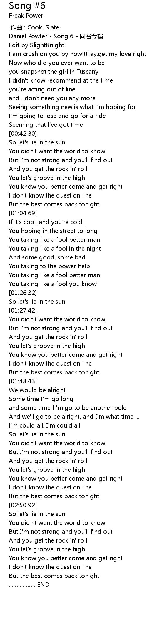 | [00:00.00] | 作曲 : Cook, Slater |