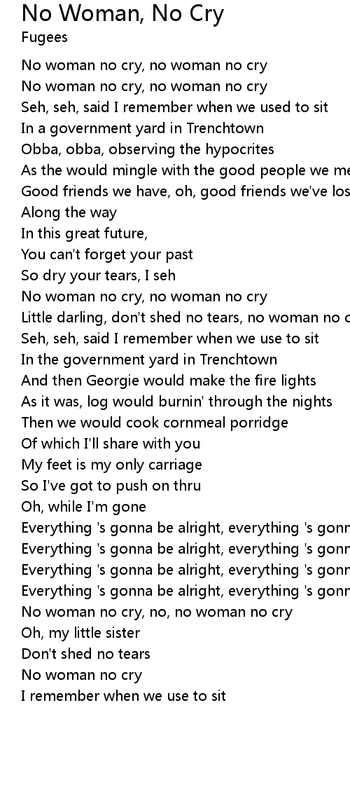 No woman no cry, no woman no cry |