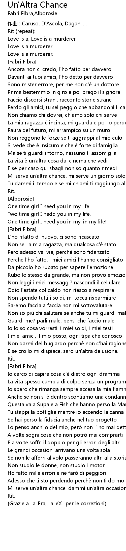 | Song | Un'Altra Chance |