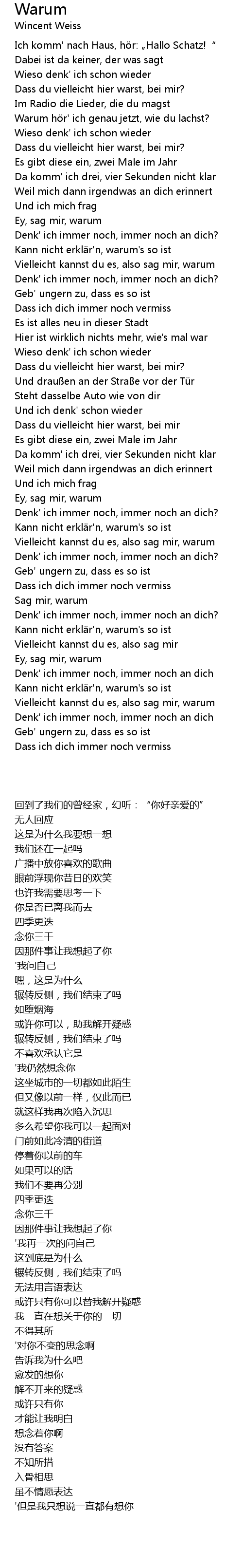 | [02:15.44] | Dass ich dich immer noch vermiss |