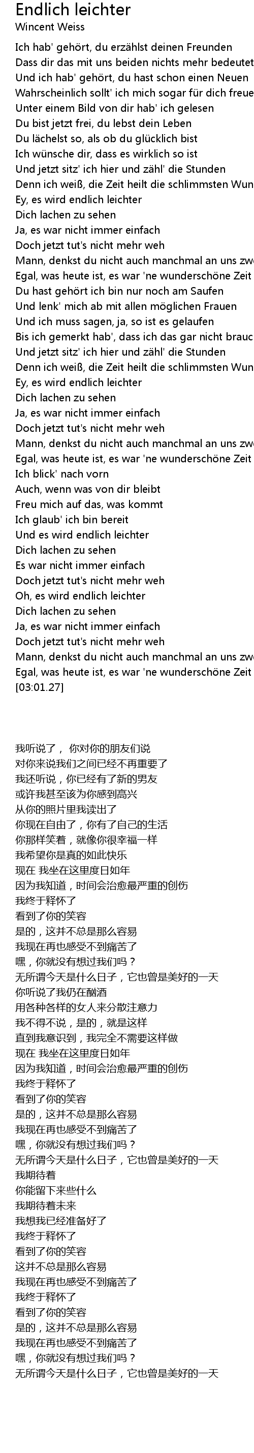 | [01:34.82] | Denn ich wei, die Zeit heilt die schlimmsten Wunden |