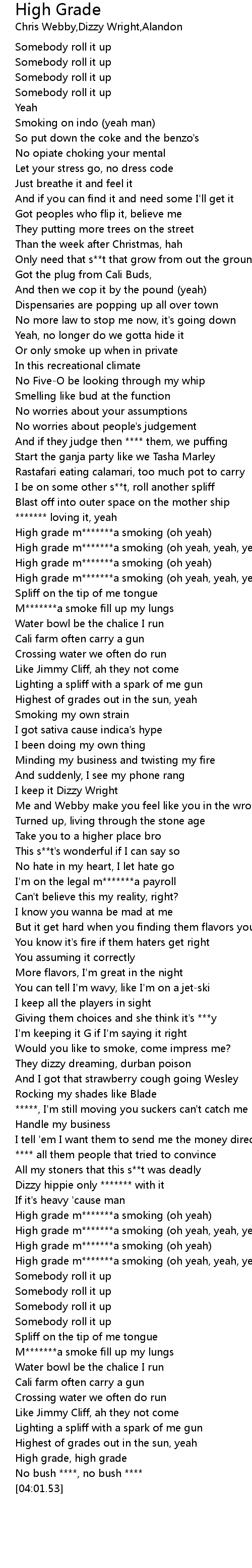 High grade m*******a smoking (oh yeah, yeah, yeah) |