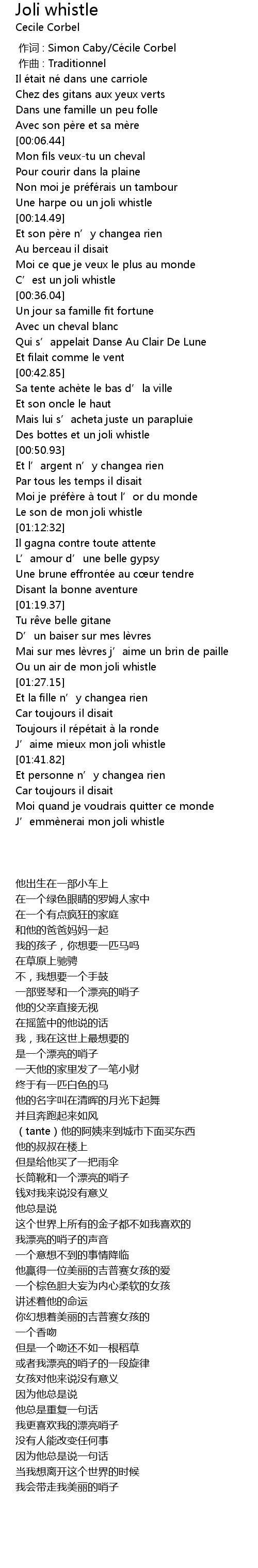| [01:33.54] | J' aime mieux mon joli whistle |