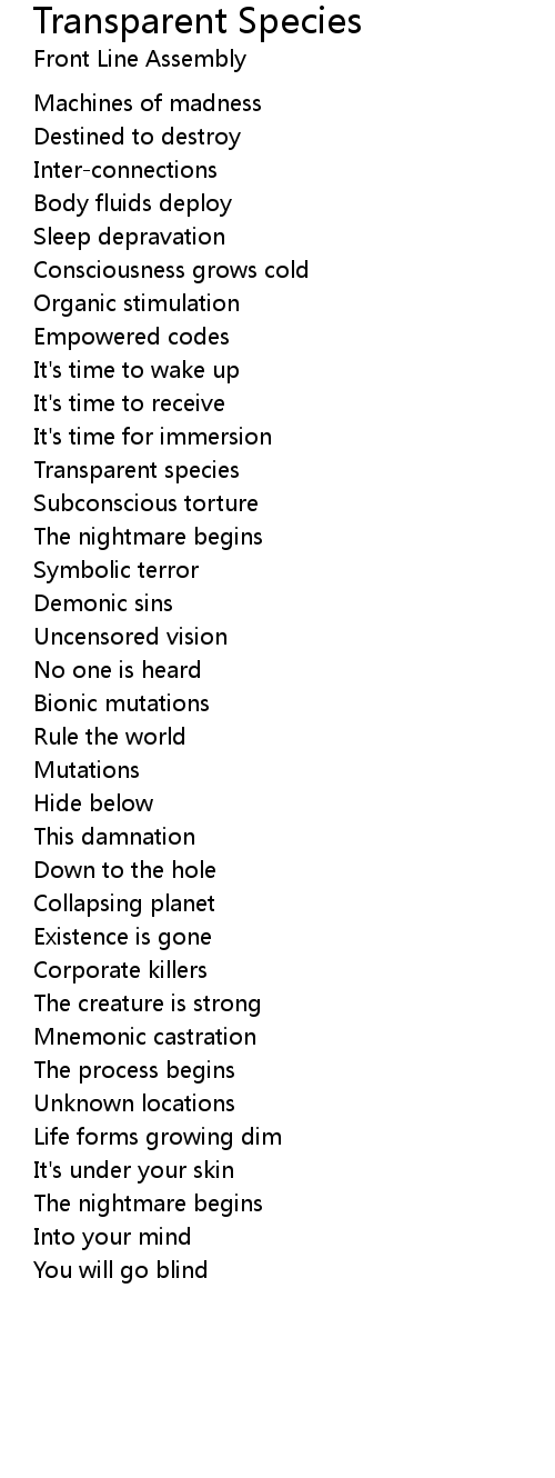 Transparent Species Lyrics