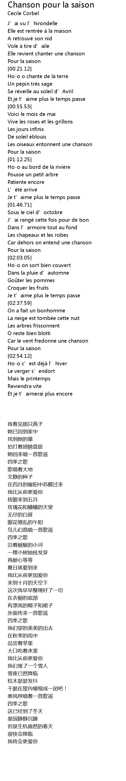 | [02:54.22] | Hoo c' est de ja l' hiver |