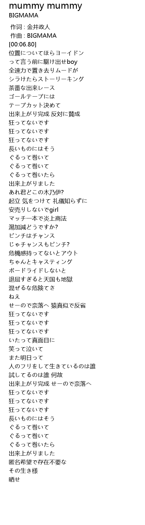 | [00:01.000] | zuò qǔ : BIGMAMA |